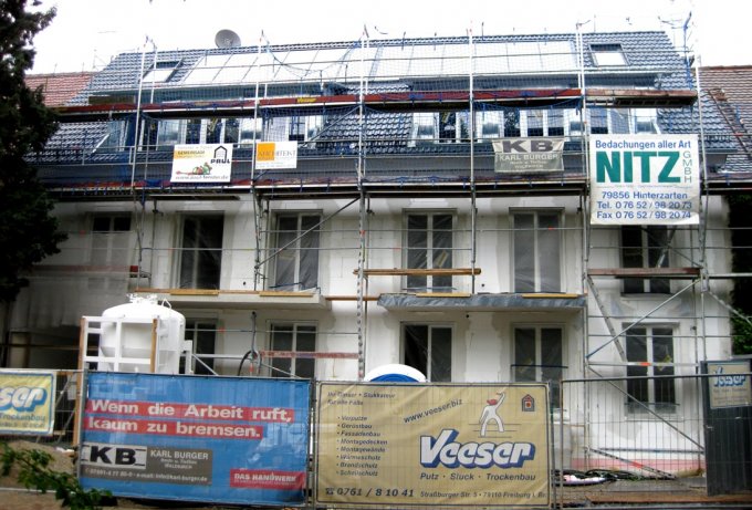 Auch beim Neubau dieses Mehrfamilienhauses inmitten bestehender Bebauung in Freiburg-Herdern erbrachte die Firma Karl Burger alle Arbeiten vom Keller bis aufs Dach aus einer Hand.