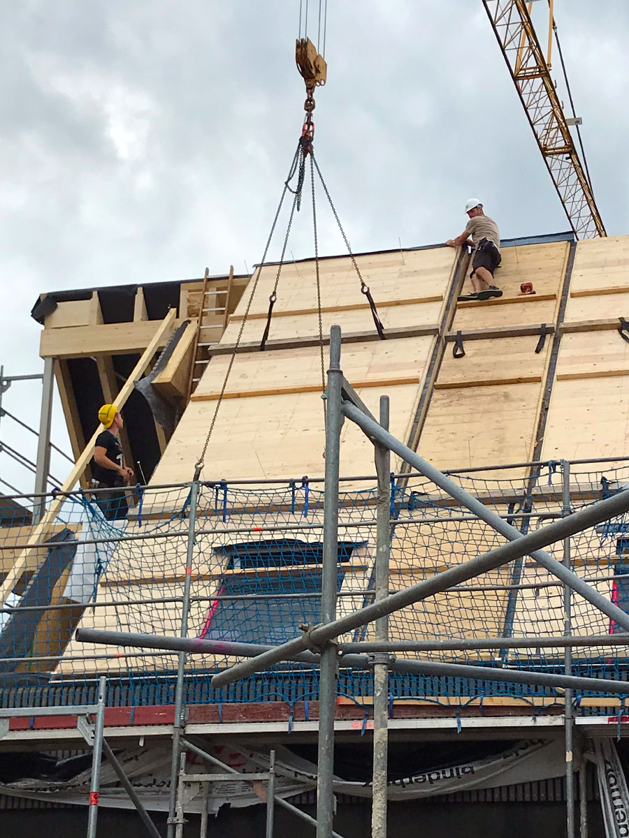 Mit dem Neubau unseres HolzElementWerks können wir unser Können in unseren drei Kernkompetenzen Massivbau, Holzbau und Betonfertigteile eindrucksvoll unter Beweis stellen und durch die neuen Fertigungsmöglichkeiten in neue Dimensionen des Holzbaus vordringen. Die hybride Fertigungshalle, an der die Werkstätten und Technikräume sowie Büroräume in Form eines 2-geschossigen Massivbaus angrenzen hat eine Grundfläche von 2500m². Das […]