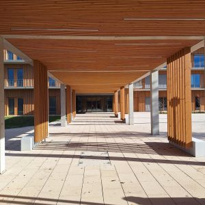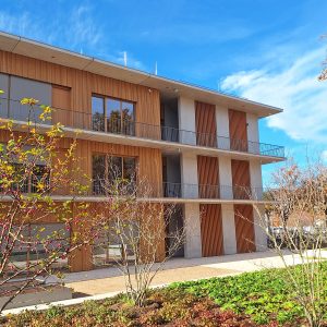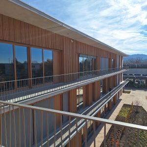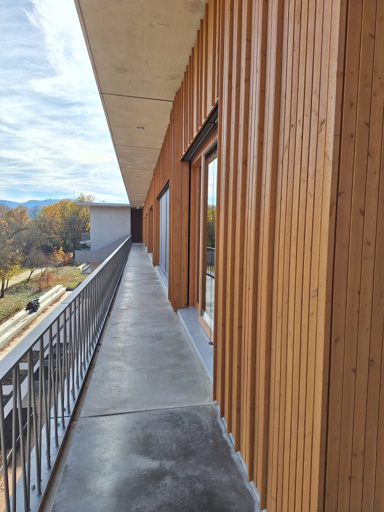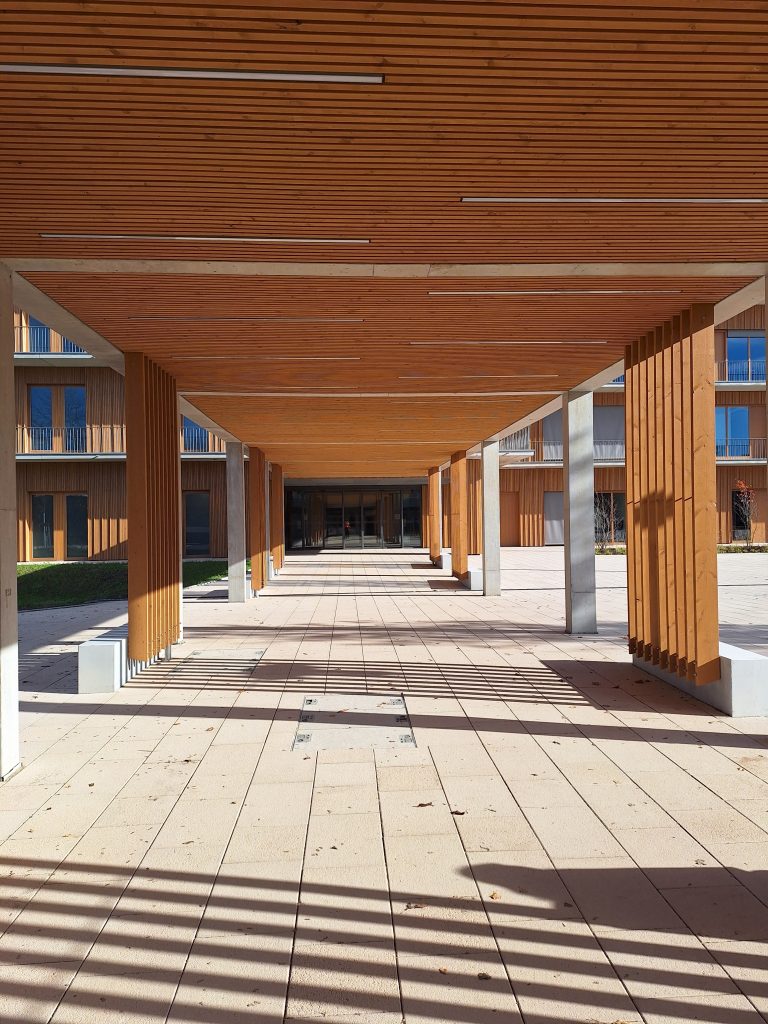 Durch die sorgfältige Vorelementierung der komplexen und detailreichen Fassadenelemente, die in unserem HolzElementWerk handwerklich präzise gefertigt wurden, sowie durch eine effiziente und passgenaue Montage vor Ort konnten wir einen wesentlichen Beitrag zum erfolgreichen Ablauf dieses Großprojekts leisten und die architektonische Qualität der Gebäudehülle maßgeblich mitgestalten.