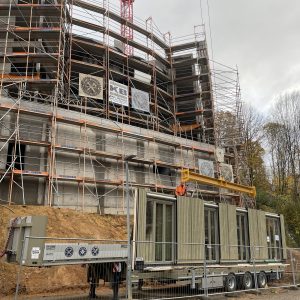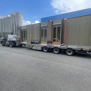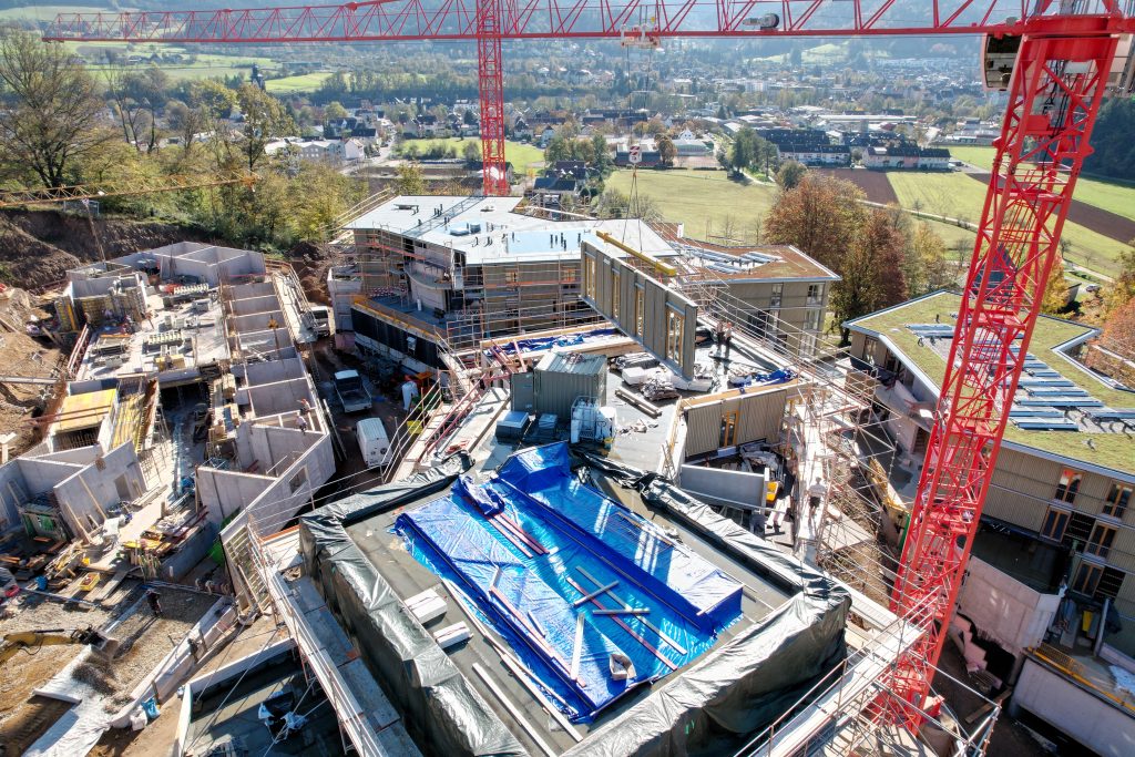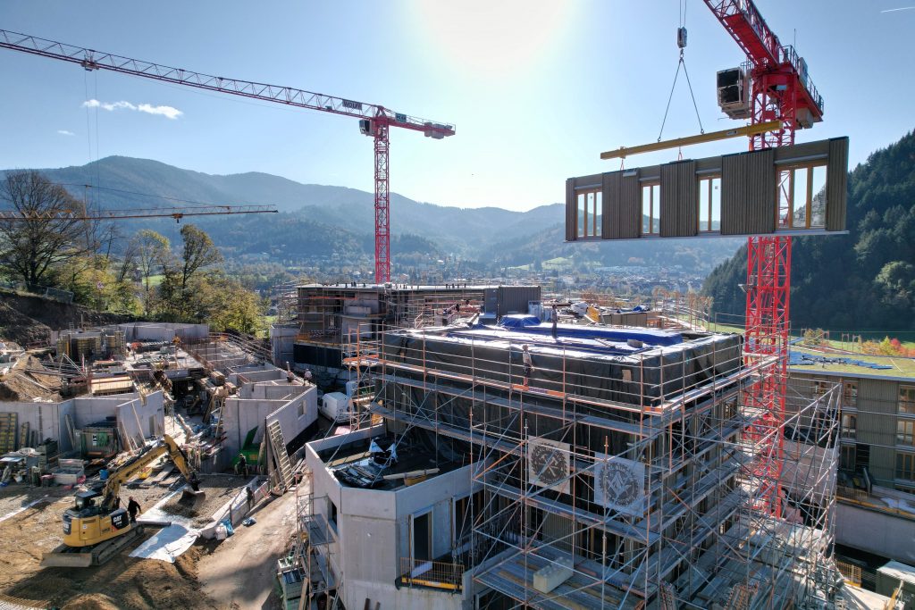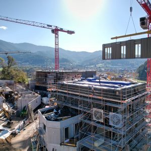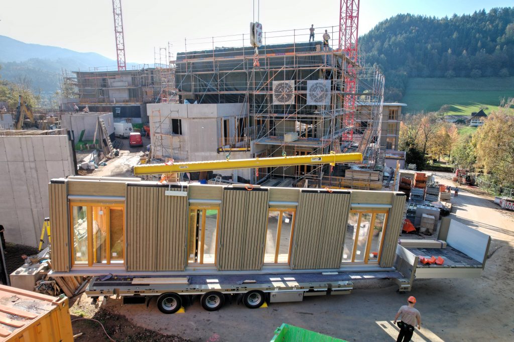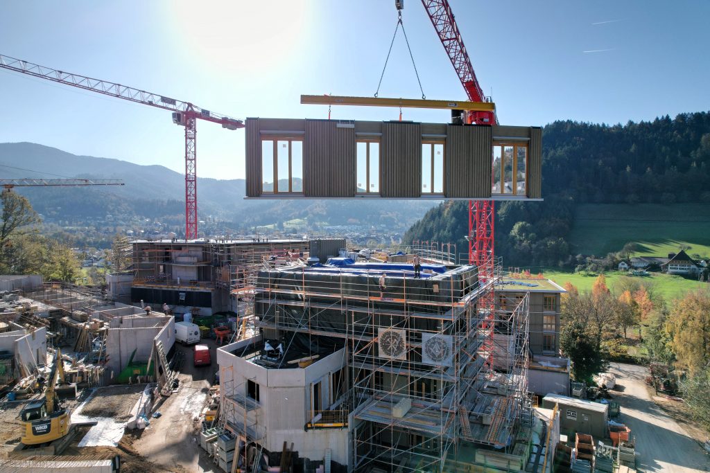 Unsere eigene Logistik ermöglichte eine flexible und stets „just in time“-Lieferung, wodurch der Bauablauf reibungslos und effizient verlief. Dieses Projekt zeigt eindrucksvoll, wie modernes, serielles Bauen mit Holz höchste Qualität, Effizienz und Ästhetik vereinen kann.
