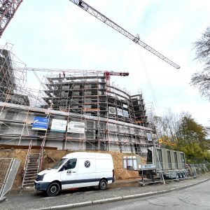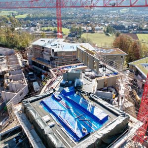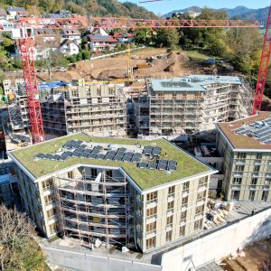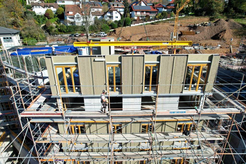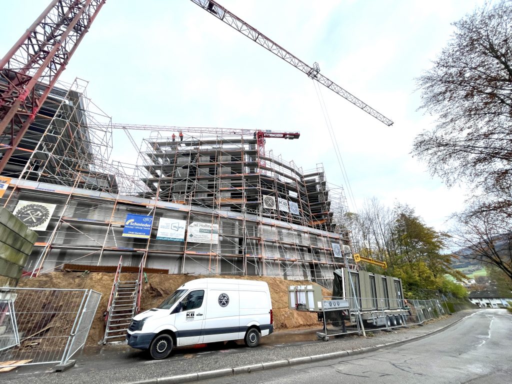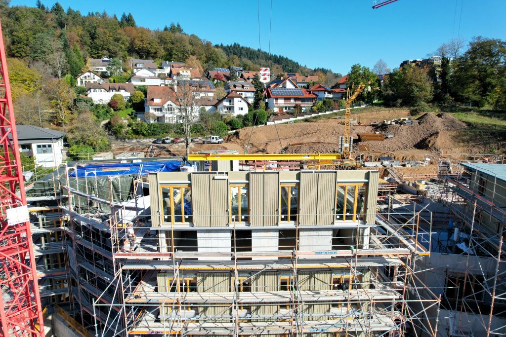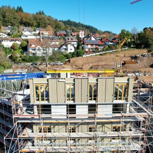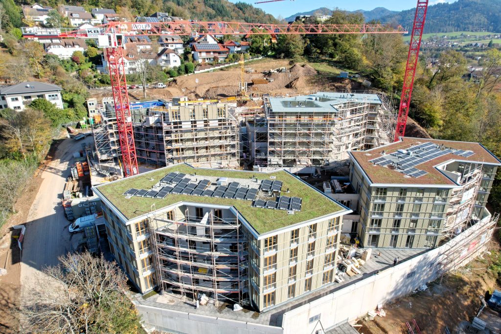 Im Waldkircher Ortsteil Kollnau haben unsere Spezialisten im Bereich des seriellen Bauens mit Holz ein eindrucksvolles Projekt realisiert. Am Eingang zum Kohlenbacher Tal entstand ein wahrer Blickfang: Drei monumentale Tiefgaragen mit jeweils zwei Mehrfamilienhäusern wurden in Rekordzeit durch unsere Massivbauteams errichtet.
