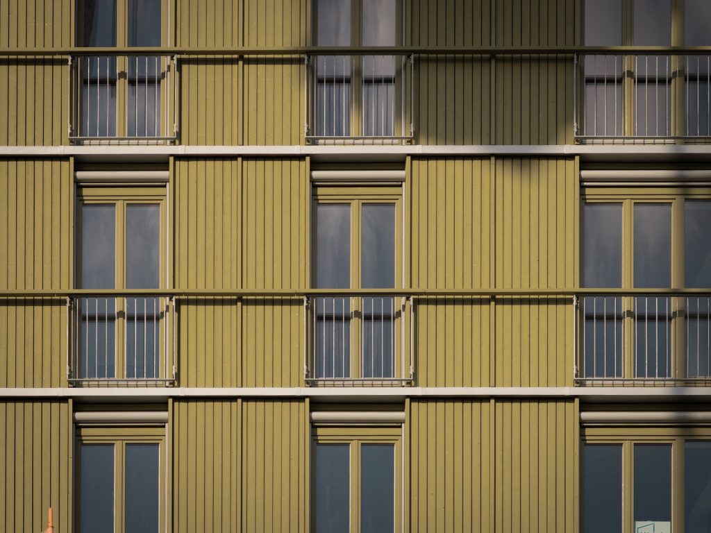 Dank dieses hohen Vorfertigungsgrads betrug die Montagezeit der kompletten wärmegedämmten Fassade inklusive der auskragenden Dachkonstruktion weniger als drei Wochen pro Gebäude. Insgesamt fertigten und montierten wir im ersten Bauabschnitt mehrere tausend Quadratmeter Fassadenelemente.