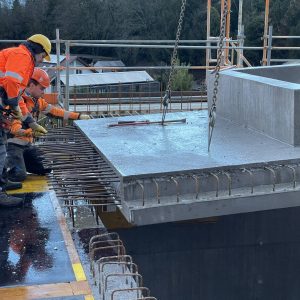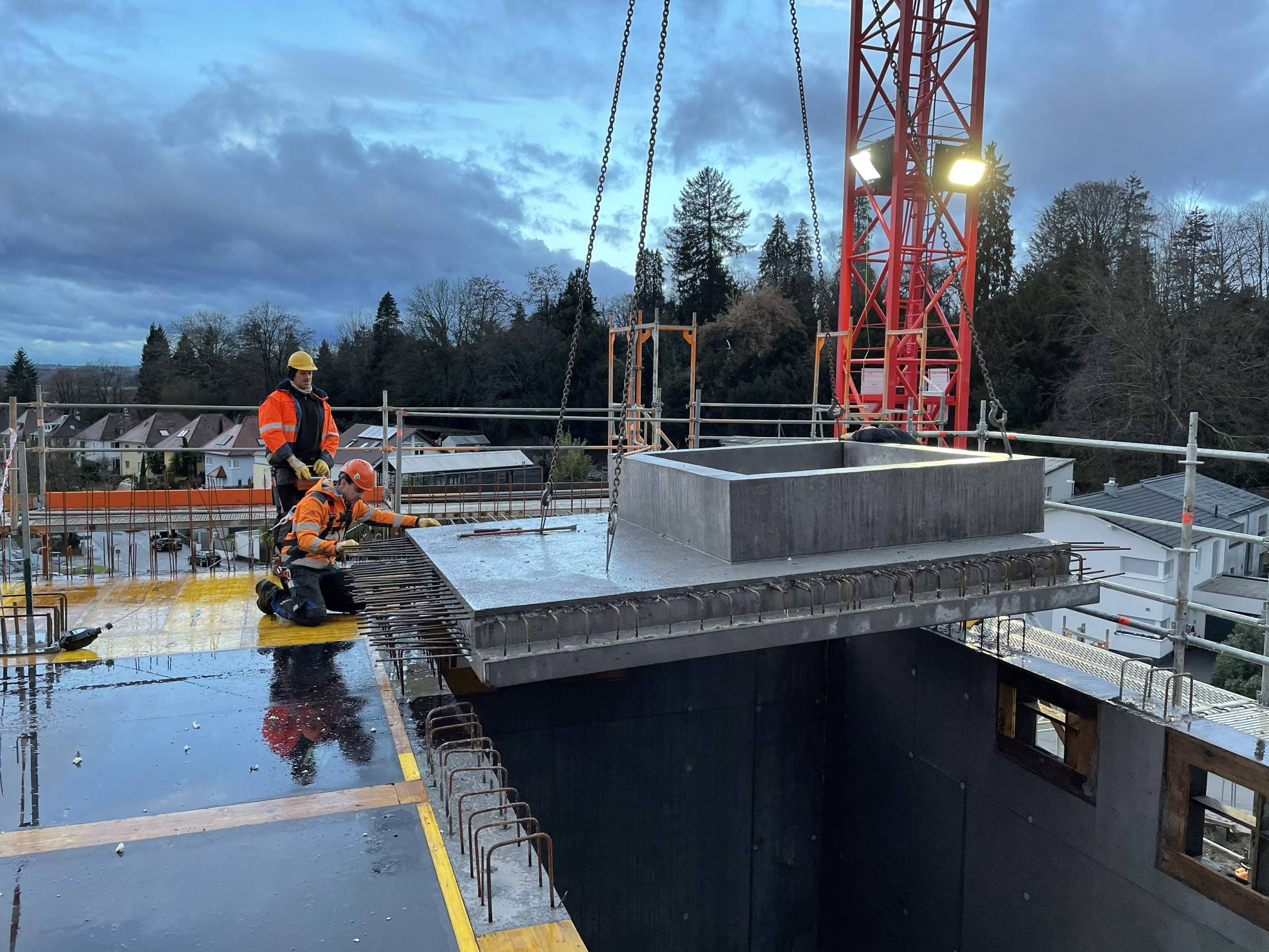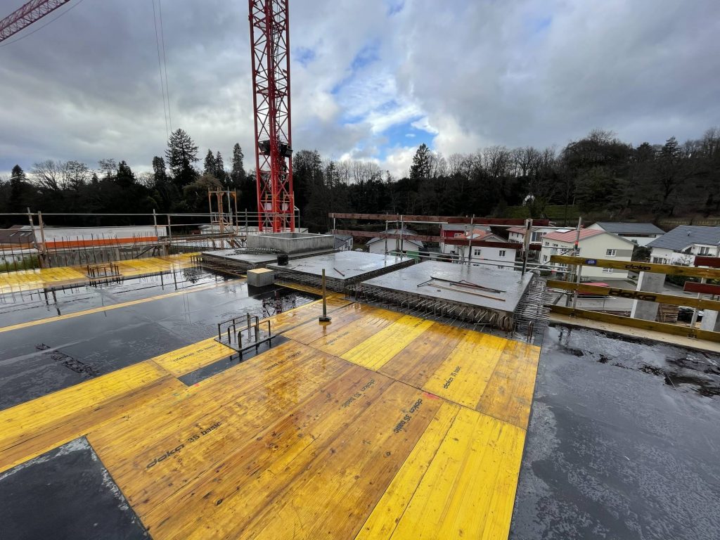 Zur kraftschlüssigen Einbindung in die angrenzende Deckenfläche wurden umlaufende Bewehrungsanschlüsse vorgesehen.