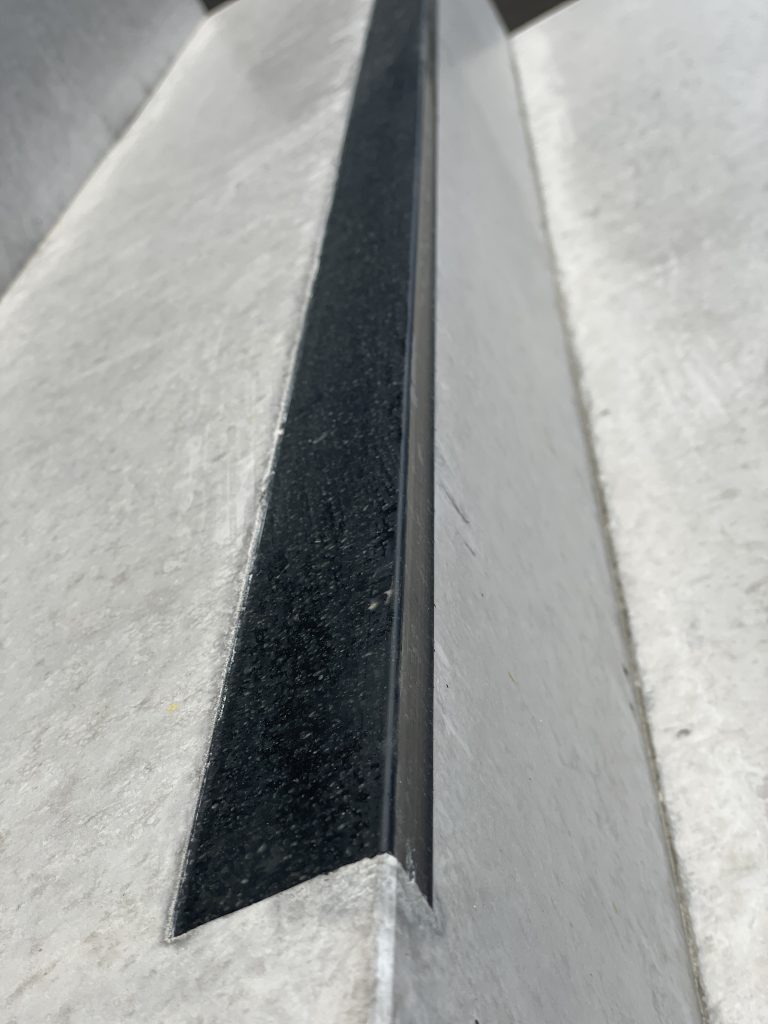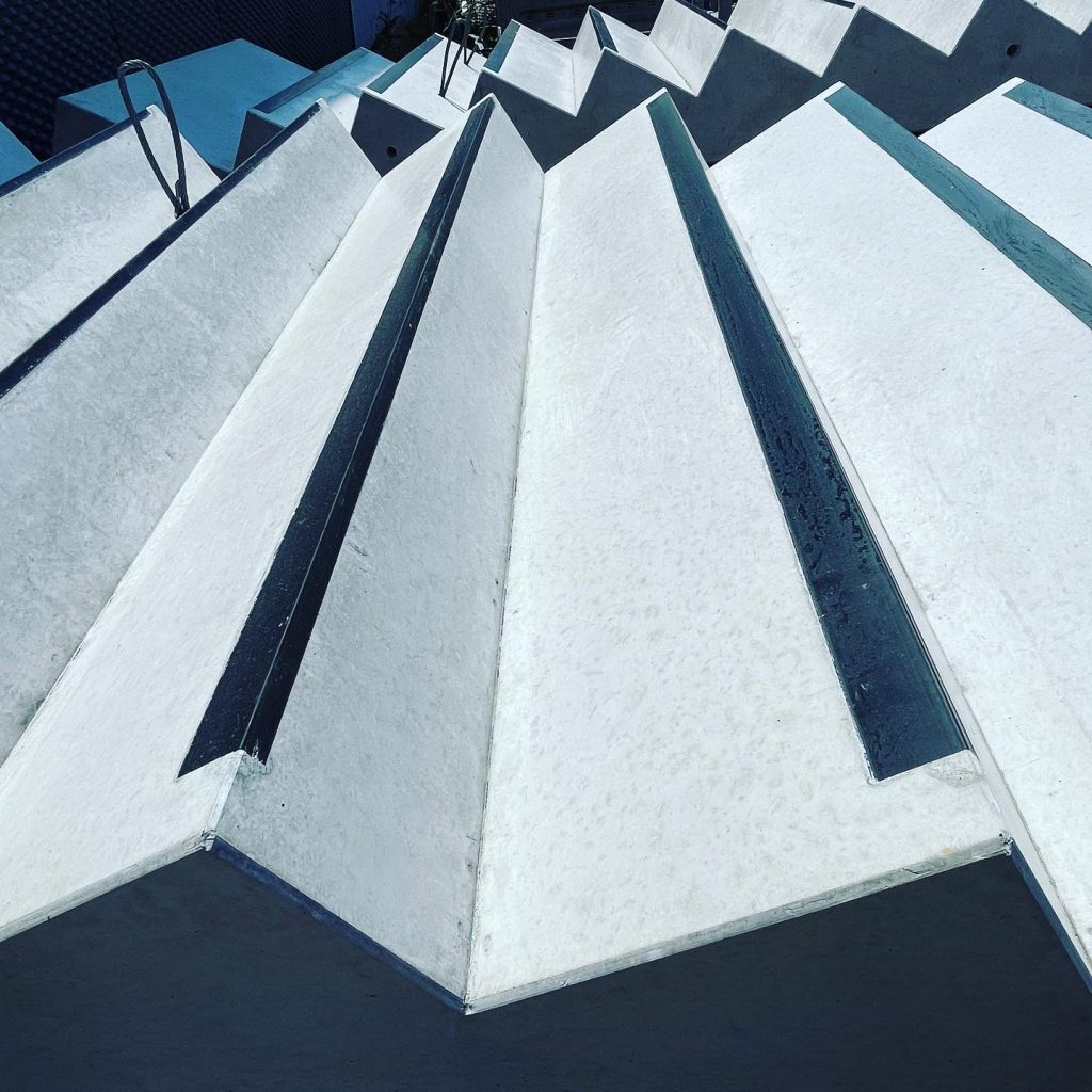 Zur Einhaltung der sicherheitsrelevanten Anforderungen im öffentlichen Raum wurden rutschhemmende Anti-Rutsch-Profile sowie Kontraststreifen aus PVC flächenbündig in die allseitigen Sichtbetonoberflächen integriert.