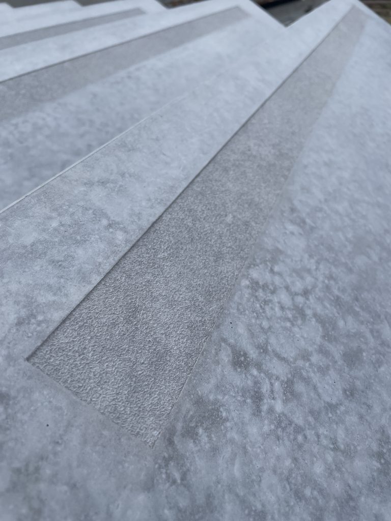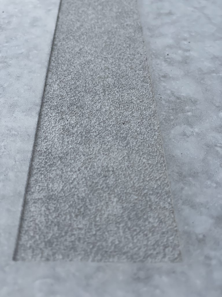 Die entsprechenden Einlagen können individuell nach Kundenwunsch in unterschiedlichen Strukturen ausgeführt werden. Dadurch lassen sich die erforderlichen rutschhemmenden Oberflächen funktional integrieren und zugleich architektonisch hervorheben.