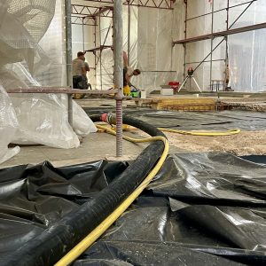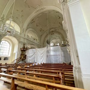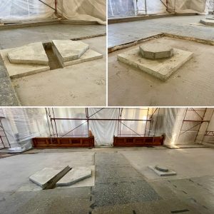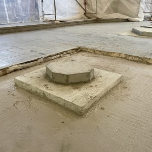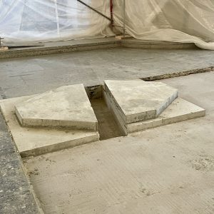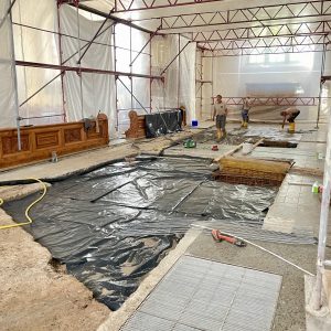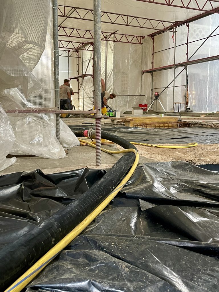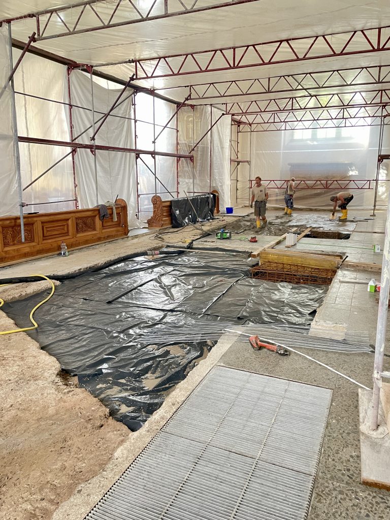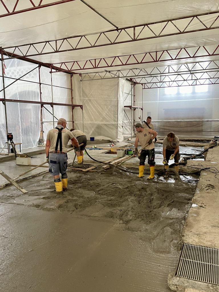 Nach Fertigstellung der Fundamente wurde im gesamten Altarbereich eine neue Bodenplatte aus Stahlbeton eingebaut. Diese Maßnahme stellte eine außergewöhnliche bauliche Herausforderung dar, die dank der langjährigen Erfahrung, des handwerklichen Könnens unserer Fachkräfte sowie des Einsatzes unserer Anhängerbetonpumpe erfolgreich und zur vollsten Zufriedenheit des Auftraggebers umgesetzt werden konnte.