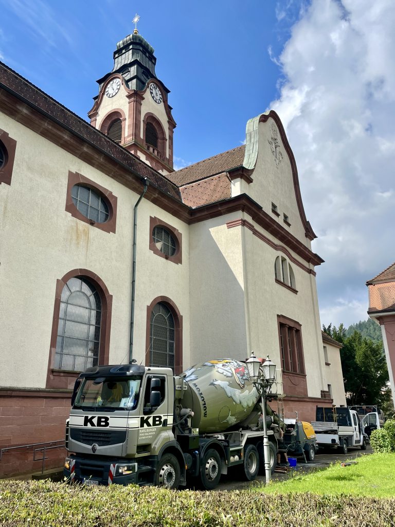 Im Zuge der Neugestaltung des Altarbereichs der St.-Josefs-Kirche in Kollnau war es erforderlich, für den massiven, aus Naturstein gehauenen Altar sowie den Ambo neue Fundamente und eine Bodenplatte im bestehenden sakralen Bauwerk herzustellen.