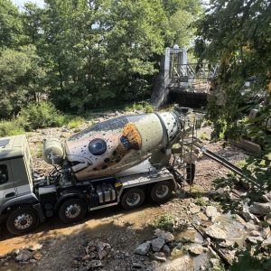 Im Zuge der zeitweiligen Trockenlegung und Außerbetriebnahme der bestehenden Wasserkraftanlage führten unsere Spezialisten zudem die Instandsetzung des knapp 400 m langen Triebwasserkanals durch. Das über 100 Jahre alte Bruchsteinmauerwerk wies vor allem im Bereich der Wasserwechselzone starke Schäden an den Fugen auf. Nach gründlicher Reinigung und Entfernung biologischer Ablagerungen konnten auch zunächst nicht erkennbare Schadstellen identifiziert werden. Anschließend wurden mehr als 30 t Trasszementmörtel zur Instandsetzung der beschädigten Fugen appliziert, um den inneren Verbund und die Abdichtung des Natursteinmauerwerks dauerhaft sicherzustellen.