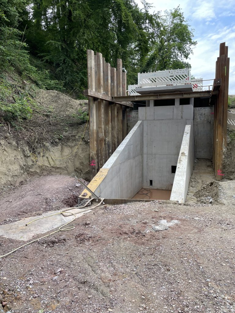 Im nördlichen Kaiserstuhl, im Endinger Ortsteil Kiechlingsbergen, wurden im Rahmen der umfangreichen Sanierungsarbeiten am Hochwasserrückhaltebecken Dietenberg auch anspruchsvolle Stahlbetonarbeiten ausgeführt. Unsere Fachkräfte bewältigten die komplexe Integration und Anpassung herausfordernder Bauwerksgeometrien in die bestehenden Stahlbetonstrukturen.