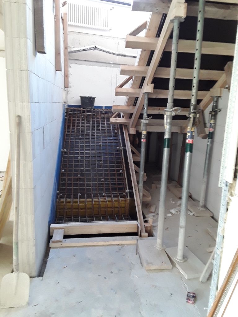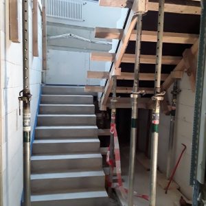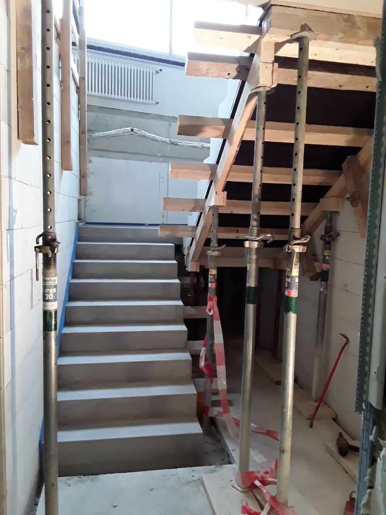 In solchen Fällen sind die Spezialisten unseres Massivbaus gefragt, ihr handwerkliches Können unter Beweis zu stellen. So auch bei dieser Treppenanlage, die wir im Zuge umfangreicher Sanierungsarbeiten in einem Freiburger Bürogebäude errichten durften.