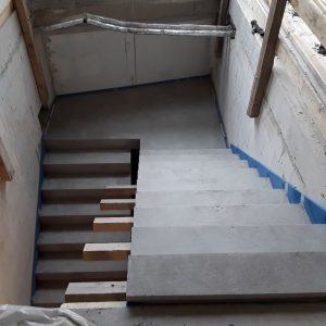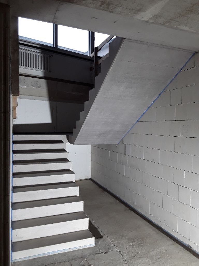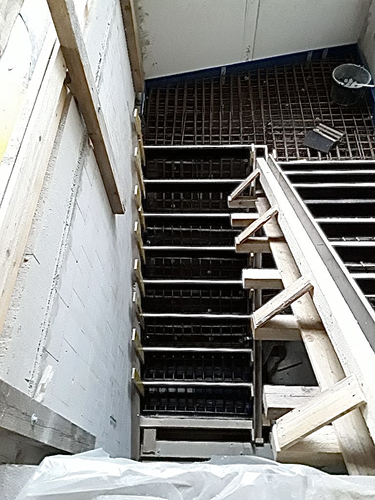 Auch im Hinblick auf die Sichtbetonqualität wurden hohe Anforderungen an die Untersicht des oberen Treppenlaufs gestellt, denen wir, wie ersichtlich, vollumfänglich gerecht werden konnten.